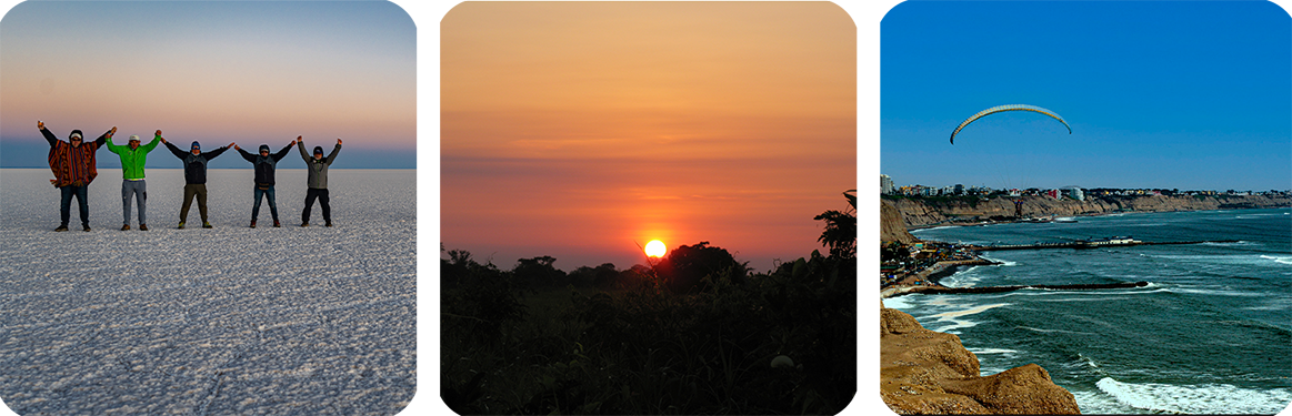 - LIMA: Lima tiene un clima costero, templado y húmedo durante todo el año. En invierno (junio a septiembre), los días son nublados y frescos, con temperaturas entre 14 °C y 18 °C, mientras que en verano (diciembre a marzo) el clima es cálido y soleado, con máximas de hasta 30 °C. Se recomienda llevar ropa ligera en verano, junto con bloqueador y gafas de sol, y en invierno, prendas abrigadoras pero livianas, como casacas cortaviento y calzado cómodo.