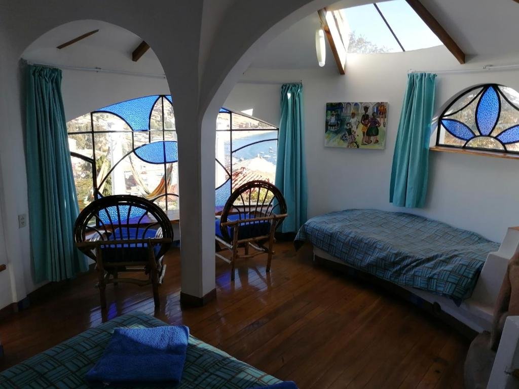 El Hotel “Las Olas” está ubicado al pie del cerro calvario con una excelente vista al lago Titicaca. Desde todas sus cabañas, usted tendrá una vista maravillosa sobre la bahía y el lago. Podrá disfrutar de un hermoso jardín con hamacas, sillas playeras y mesas desde donde también tiene una vista panorámica. Todas las suites fueron diseñadas individualmente y proveen el mayor confort.