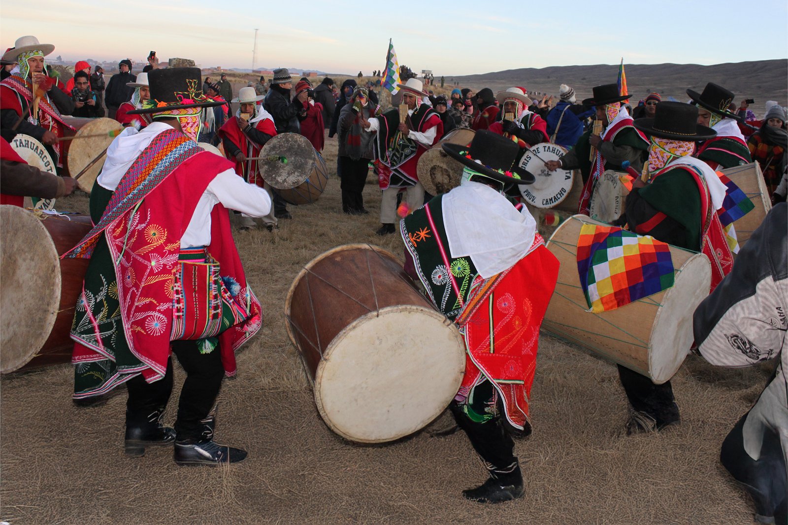 03:30 am. Iniciamos con el recojo de nuestros turistas de sus respectivos hoteles/hostales céntricos de la ciudad de La Paz, para dirigirnos a través de una carretera asfaltada a Tiawanaku, ubicado a dos horas en transporte, arribo a Tiwanaku donde haremos nuestra fila para ingresar al centro religioso y una vez dentro, nos dirigiremos al templo de Kalasasaya, donde esperaremos la salida del sol y compartiendo con cientos de turistas tanto nacionales como extranjeros apostados en el lugar esperando los primeros rayos de sol que es un momento de gran importancia espiritual y con las manos extendidas hacia arriba para renovar la energía personal y tener un mejor año. Además, podremos disfrutar de grupos musicales autóctonos que amenizarán la gran fiesta de recepción del nuevo año andino. Participaremos en la ceremonia principal en honor al Tayta Inti, junto con los sacerdotes andinos.Después de recibir el año nuevo andino, visitaremos el centro arqueológico de Tiwanaku, el más importante de Bolivia. Luego, tendremos el desayuno y se les dará tiempo libre a los turistas para que sigan disfrutando de la fiesta. Finalmente, tomaremos nuestro transporte y regresaremos a la ciudad de La Paz.