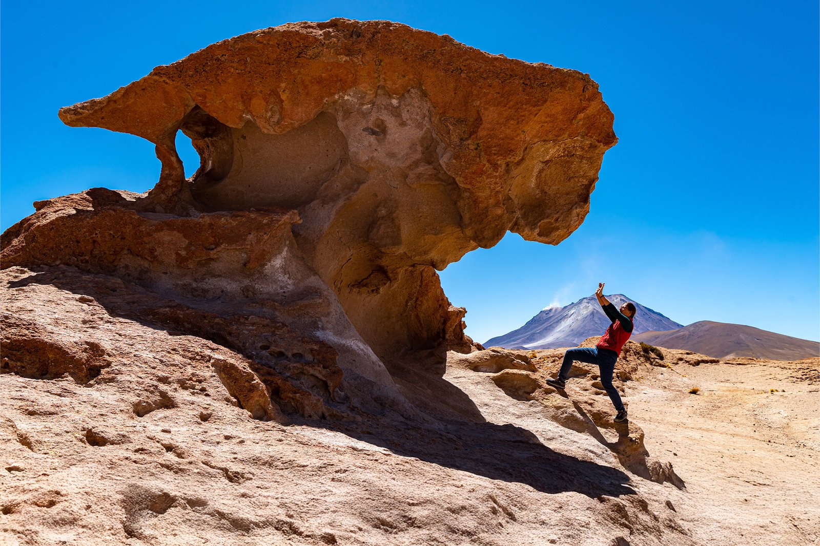 Después del desayuno, este día saldremos muy temprano a nuestro tour, la primera parada será en la Laguna Colorada ubicada en el Parque Nacional de Fauna Andina Eduardo Avaroa. El color rojo intenso de sus aguas se debe a la presencia de ciertas algas y sedimentos en el agua. Esta laguna es rica en minerales como el sulfato de magnesio y hierro, que combinan con la luz solar para crear una tonalidad rojiza. Esta puede variar dependiendo de la hora del día y las condiciones climáticas. En esta laguna, también podremos encontrar los mayores grupos de flamencos andinos, patos y gaviotas que se alimentan de las algas de la laguna.