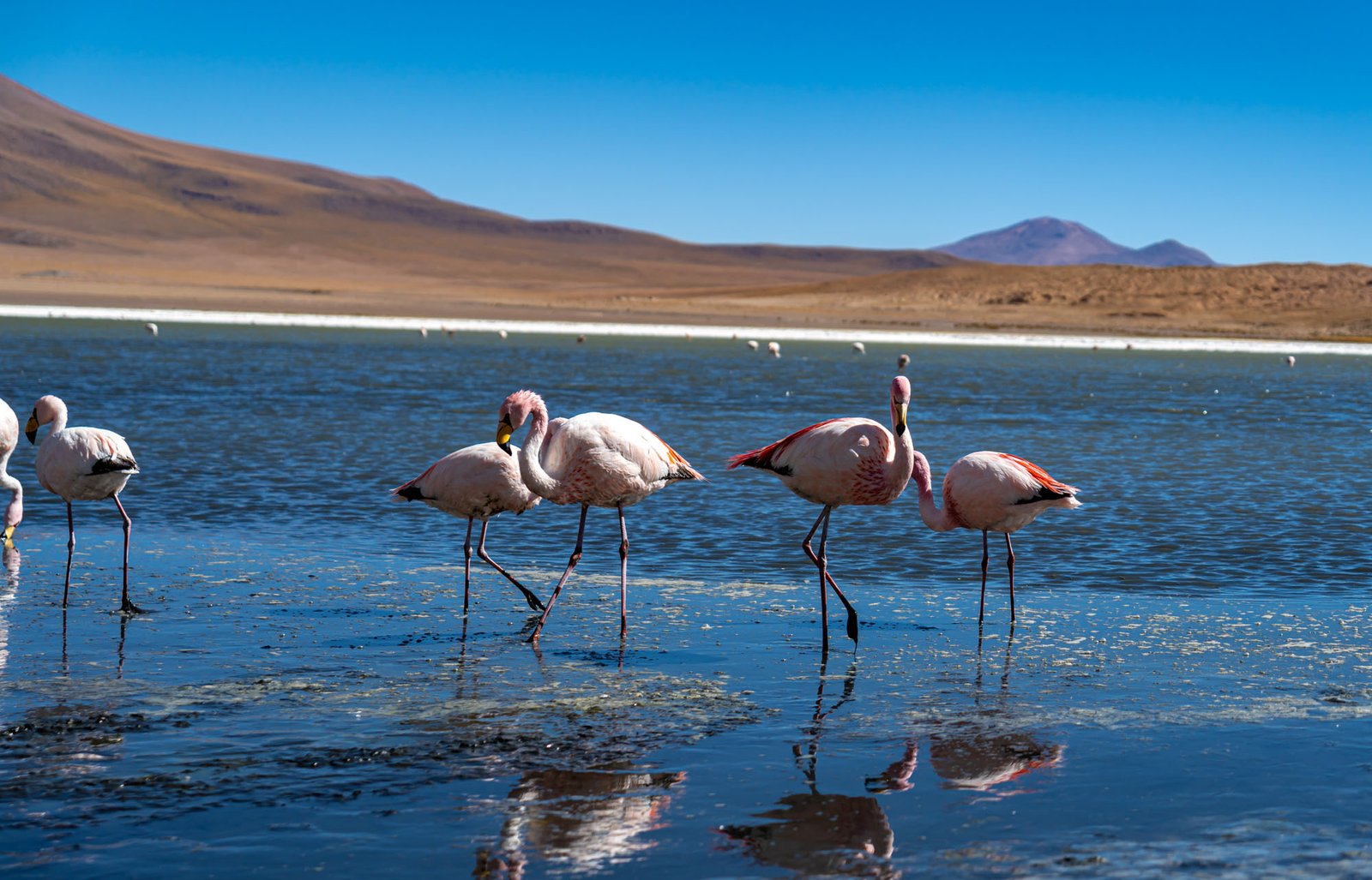 Después del desayuno continuaremos nuestra aventura con destino a la población de San Juan/Atulcha. La primera parada será en el Valle de las Rocas, un área de formaciones geológicas desérticas y áridas donde podremos encontrar formaciones rocosas con diferentes formas, continuando nuestro recorrido visitaremos las lagunas Honda, Chiarcota, Hedionda y Cañapa, estás lagunas están pobladas por grupos de flamencos, varias especies de patos, vicuñas y zorros. Las mismas presentan un espectacular paisaje para los visitantes,  al medio día nos detendremos en el camino para tener el almuerzo y por la tarde continuando hacia el salar de Chiguana un pequeño salar en formación también realizaremos una parada para observar a distancia el volcán activo de Ollague y en horas de la tarde estaremos arribando a la población de San Juan o Atulcha donde tendremos la acomodación en las casas de familias.