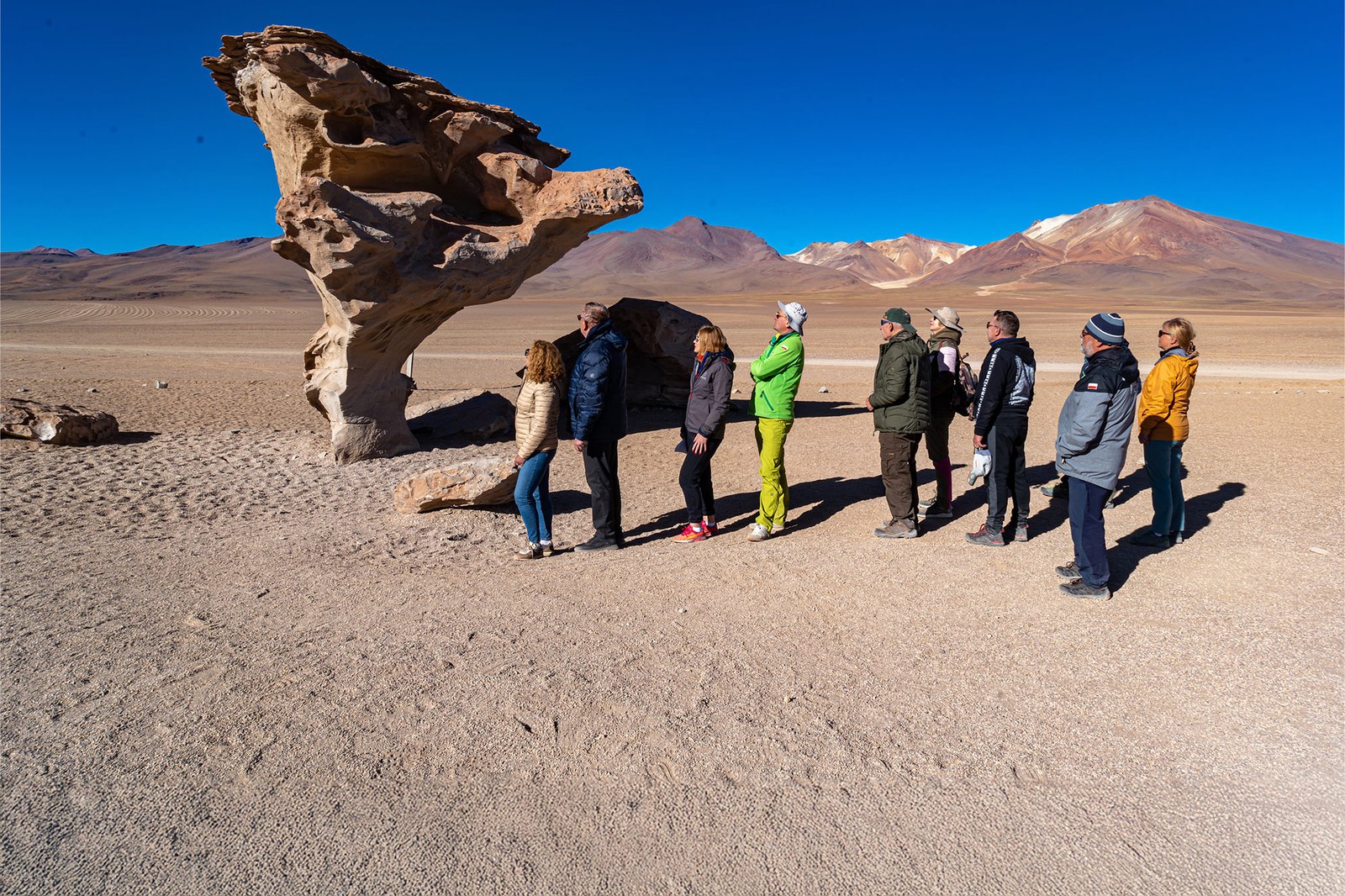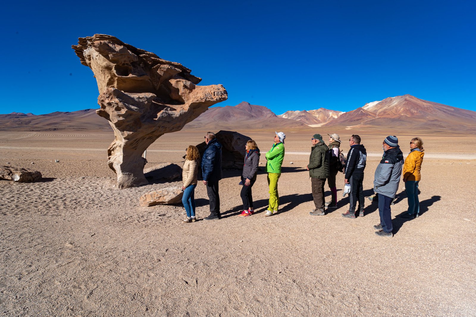 Los géiseres: Son fumarolas en una zona volcánica y fuentes geotérmicas conocidas como «Sol de Mañana». Este lugar será el punto más alto de nuestro trayecto, cerca de los 5,000 msnm. Hay varios géiseres en el lugar que están activos todo el año, y se destacan en su máximo esplendor por las mañanas, cuando la temperatura es más fría. También hay pozas de agua caliente y barro burbujeante, creando un paisaje casi lunar.