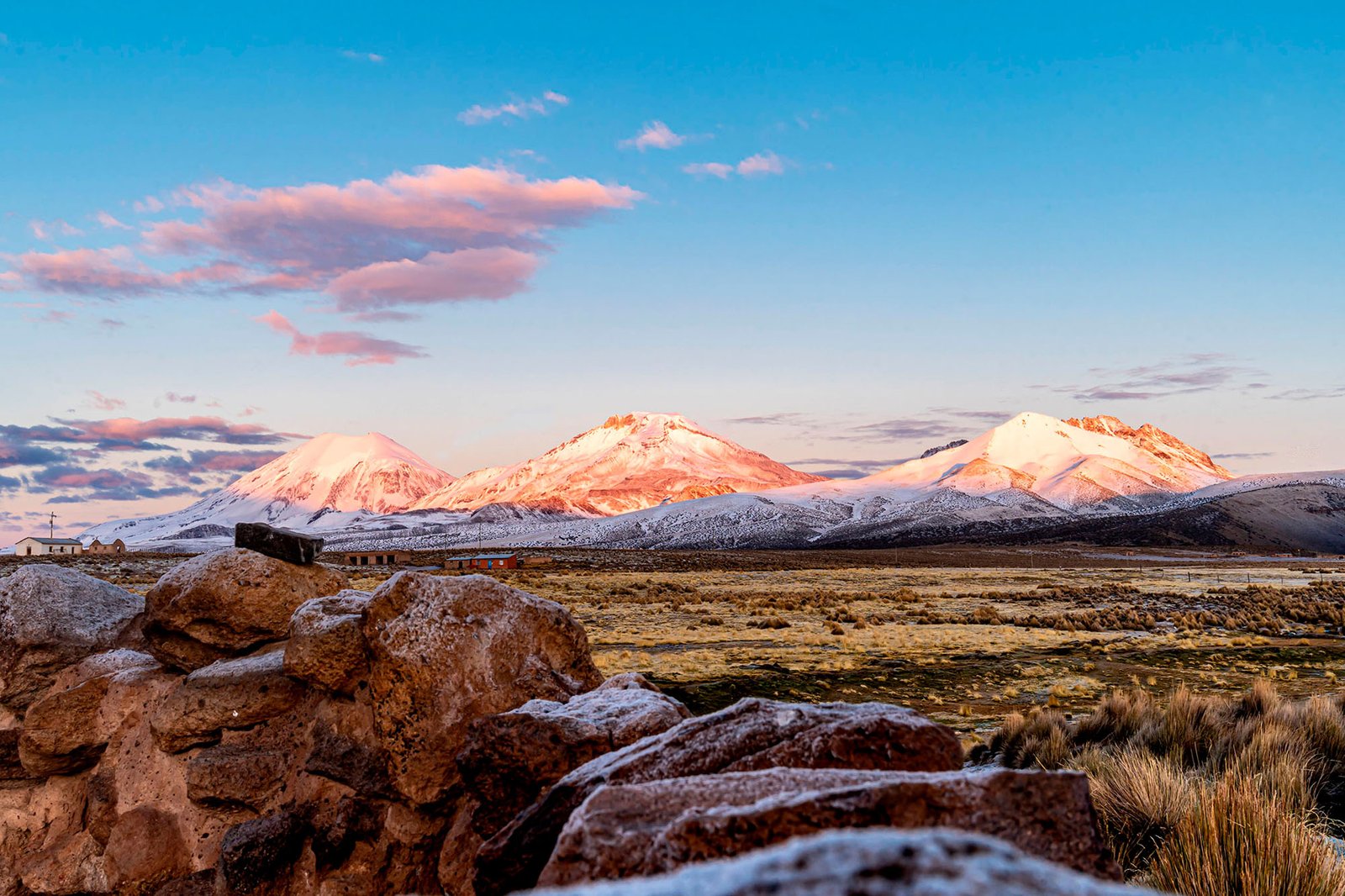 07:30 am, recojo a los hoteles/hostales céntricos de la ciudad de La Paz, para dirigirnos en un transporte turístico hacia el Parque Nacional de Sajama. Tomaremos la ruta hacia Oruro hasta llegar al pueblo de Patacamaya, allí tomaremos el desvío para llegar a la comunidad originaria de Tomarapi. Durante el trayecto, haremos varias paradas, la primera de ellas será en las Chullpas (tumbas funerarias precolombinas) estas estructuras están hechas de piedra y barro y tienen una forma cuadrada, estas tumbas se utilizaron para enterrar a los miembros importantes de la sociedad como líderes políticos y religiosos. Continuando, visitaremos la Iglesia Colonial de Curahuara de Carangas, conocida como la «Capilla Sixtina del Altiplano». Fue construida en el siglo XVII y es considerada una joya del arte religioso. En su interior se pueden apreciar numerosas pinturas murales que representan escenas de la Biblia y de la historia de la Iglesia Católica. Estas pinturas fueron realizadas por artistas locales durante la época colonial, y son consideradas como una muestra del arte mestizo que se desarrolló en Bolivia en esa época. Después de la visita, continuaremos hacia el Valle de las Rocas, un lugar con formaciones rocosas únicas y para la hora del almuerzo estaremos arribando al Albergue de Tomarapi para degustar del almuerzo y tiempo libre para que puedan descansar y en horas de la tarde saldremos a caminar por alrededores del albergue y ver el atardecer.