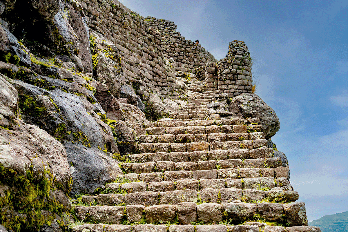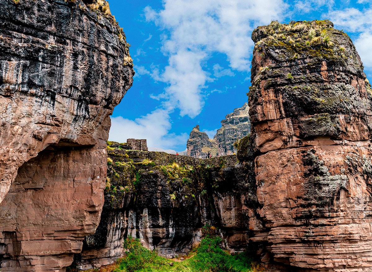 Luego continuaremos el viaje hacia el pueblo de Santa Lucía. Desde allí, tomaremos un desvío adicional de aproximadamente 20 minutos a través de una carretera zigzagueante hasta llegar a «Punta Carretera», el punto de inicio de nuestra caminata de ascenso hacia el Sitio Arqueológico de Waqrapukara (ubicado a 4,300 msnm). La caminata de ascenso tomará alrededor de una hora y media. Una vez en el sitio arqueológico, disfrutaremos de un recorrido guiado por sus principales atracciones, que incluyen plataformas, recintos, torres ceremoniales, andenerías, muros de piedra y una impresionante vista panorámica del profundo cañón y las montañas andinas.